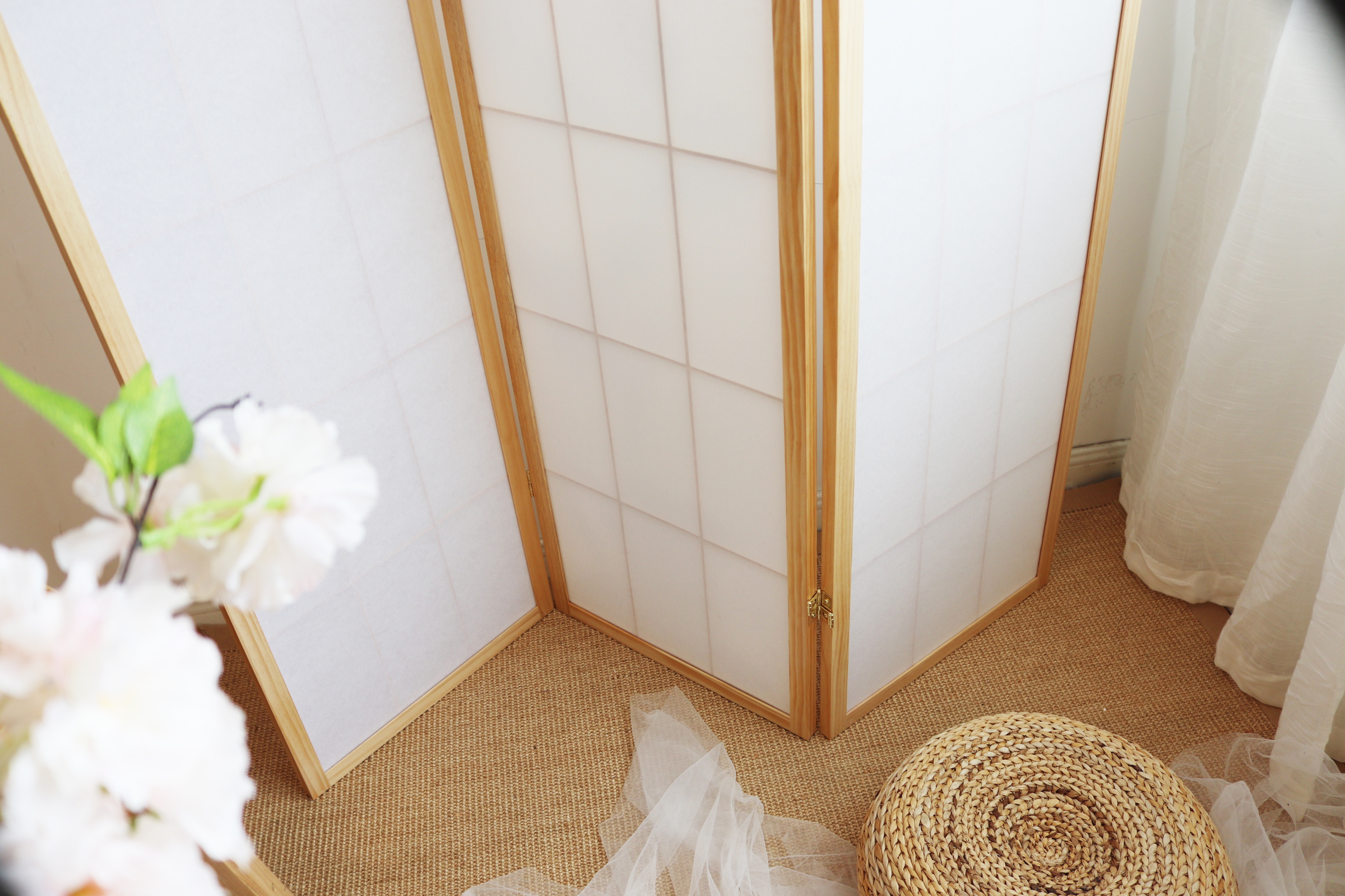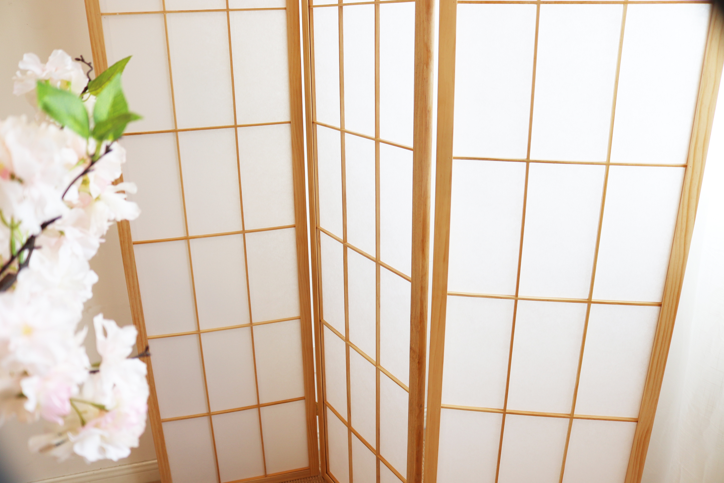 天然木の温もりを感じる三連折りたたみ式のパーテーションです。