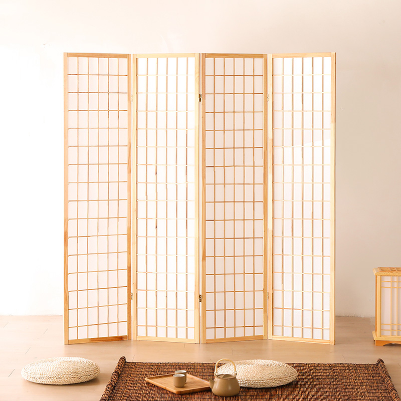 木の温もりを感じる格子組子デザインが美しい四連式のパーテーションです。