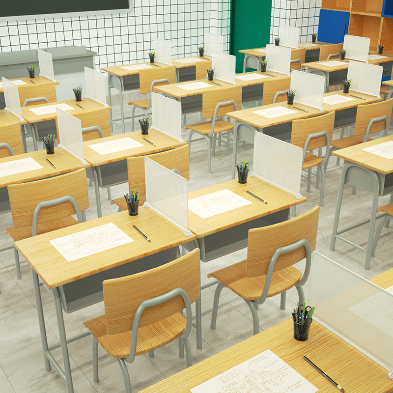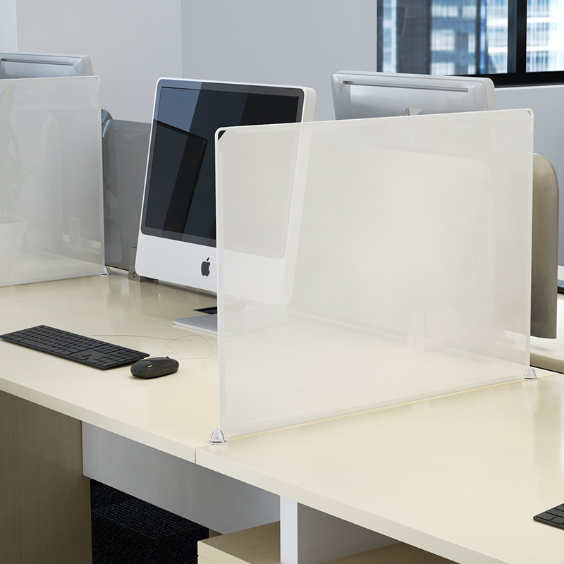 デスクの上に設置するだけで個人空間を確保できる透明なアクリル製パーテーションです。