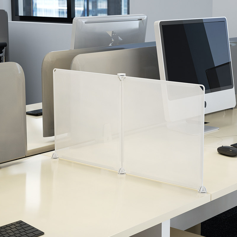デスクの上に設置するだけで個人空間を確保できる透明なアクリル製パーテーションです。 軽量で持ち運びも簡単、工具不要で組み立てられるので職場のデスクレイアウト変更にも柔軟に対応できます。 透明素材のため圧迫感を与えず、開放的な雰囲気を保ちながらプライバシーを守ります。 角には安定した脚部が付いており、パーテーションをしっかりと自立させることができる実用的な設計です。
