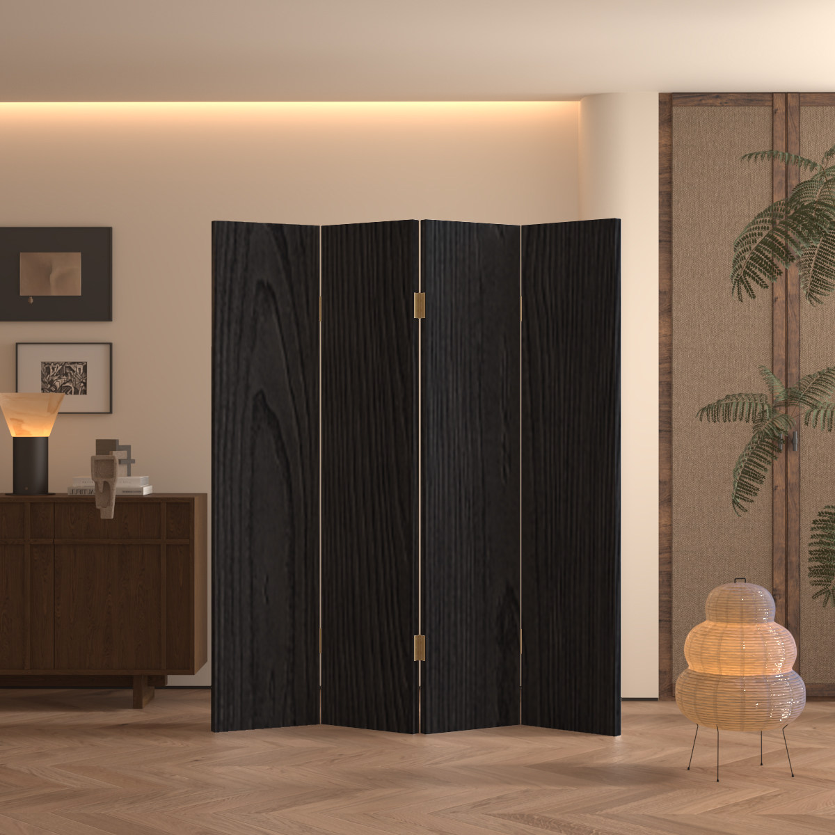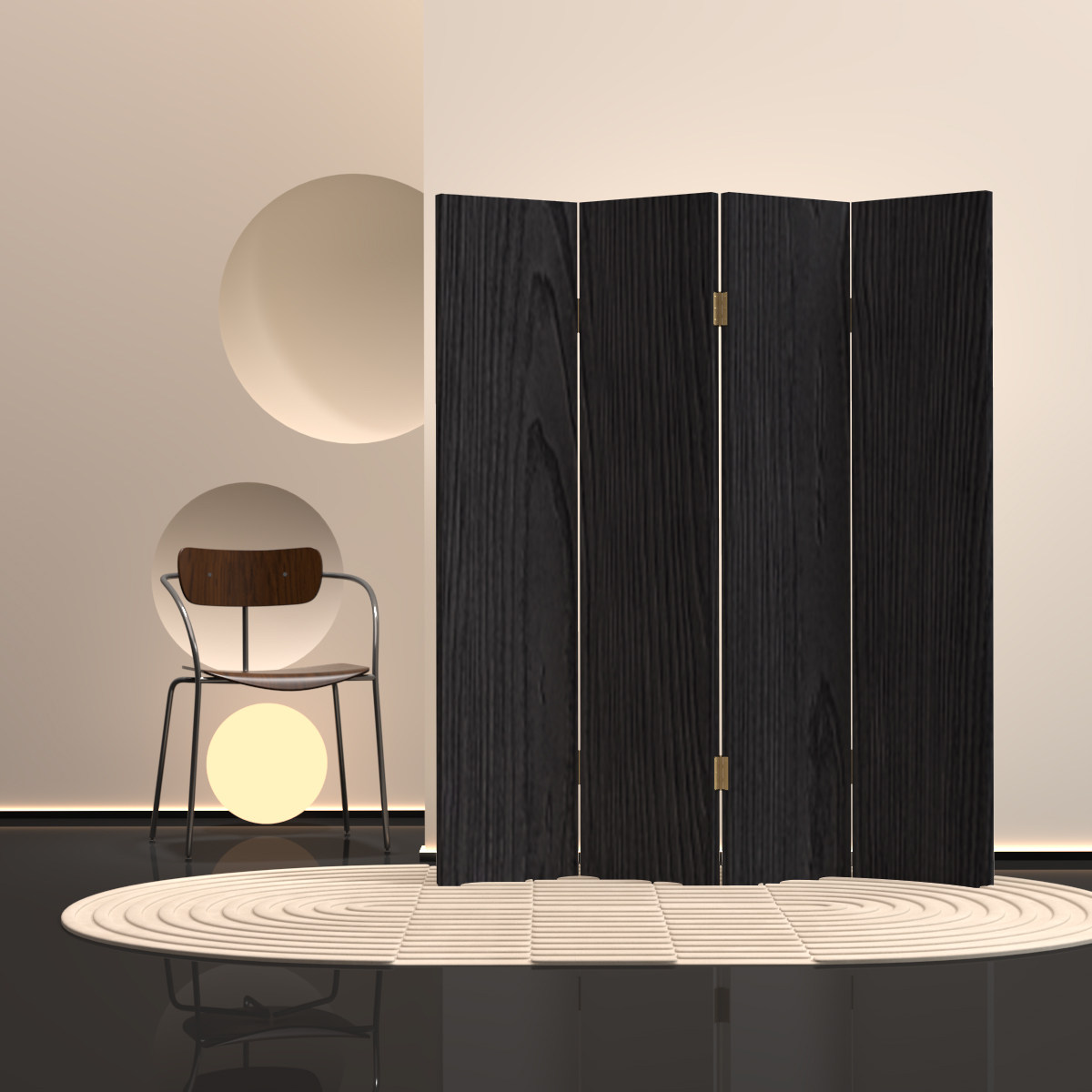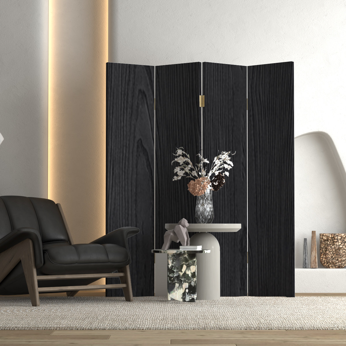 美しい木目が印象的な四連タイプのパーテーションです。 天然の木の風合いを活かした縦ラインの意匠が、空間に落ち着きと高級感を演出します。 折りたたみ式で自由に角度調整が可能なため、お部屋の間仕切りや目隠しとして多用途にご活用いただけます。 金具部分も洗練されたデザインで、和洋問わずモダンな空間づくりに最適な逸品です。 リビングや寝室、書斎などプライベート空間の演出におすすめです。