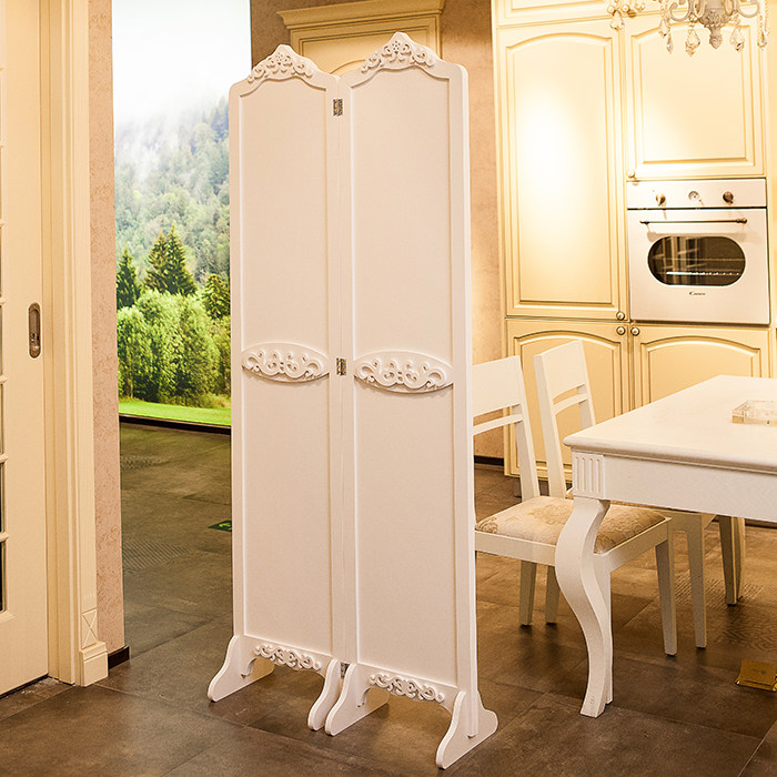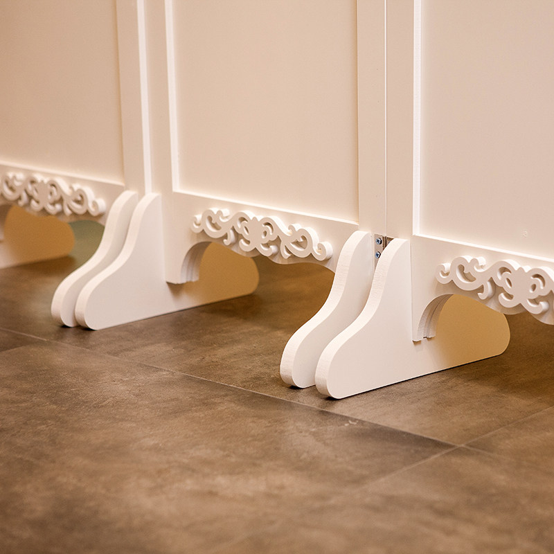 四連の大型衝立として空間をしっかりと区切りながら、姫系の洋風インテリアに上品な雰囲気を演出します。