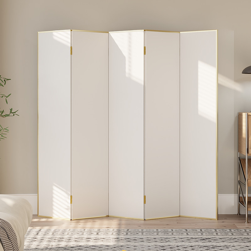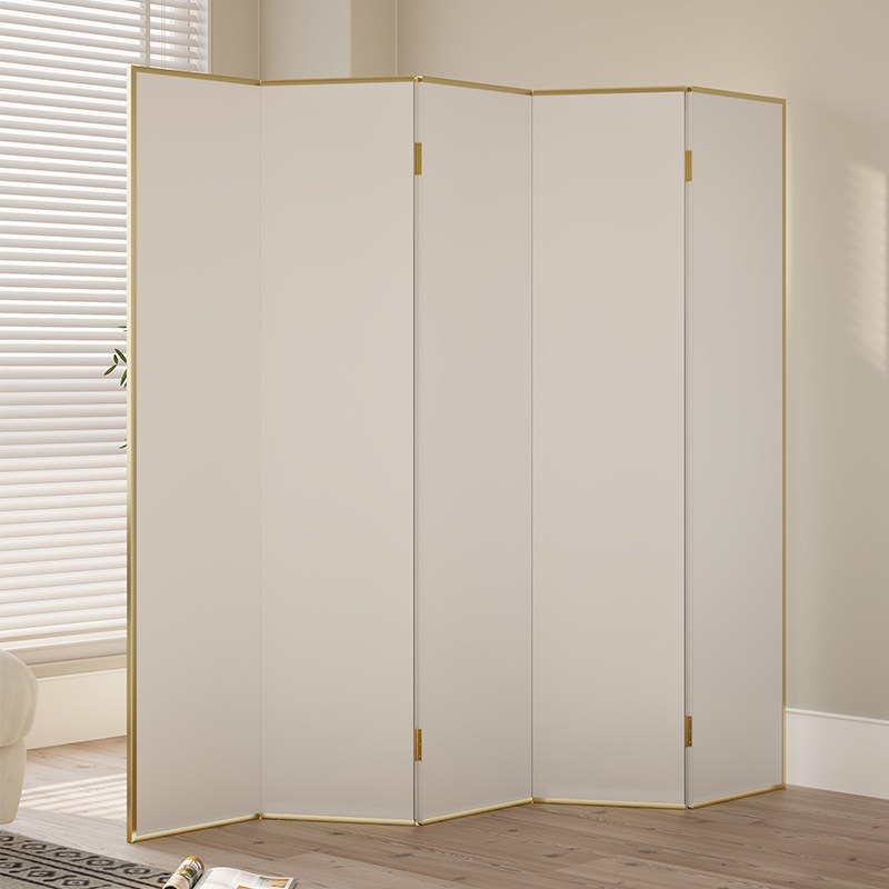 木のフレームが上品なアクセントとなった五連式のパーテーションです。 空間を緩やかに仕切りながら、お部屋に落ち着いた雰囲気を演出します。 折りたたみ式なので使わない時はコンパクトに収納でき、設置場所も自由自在。 木の温もりを感じる縁取りが、北欧風や和モダンなどさまざまなインテリアに調和します。 リビングや寝室、書斎など多目的にご使用いただける間仕切りパーテーションです。