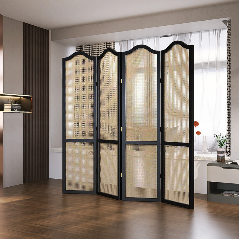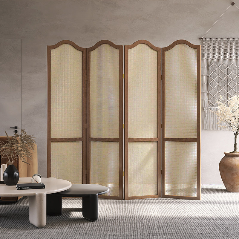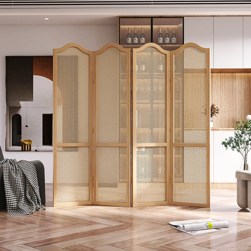 天然木の温もりと籐編みパネルの風合いが調和し、リビングや寝室の目隠しに最適です。