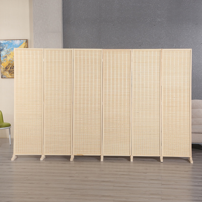 木の温もりを感じる天然素材の衝立型パーテーションです。 細やかに編み込まれた素材と木製フレームが優しい雰囲気を演出し、和室にも洋室にも調和します。 六枚の連結パネルは自由に角度を調整でき、空間を柔軟に仕切ることが可能です。 適度な透け感で圧迫感を軽減しながら、目隠しや間仕切りとして機能します。 軽量で折り畳み式のため、移動や収納も簡単で、暮らしに寄り添う実用性の高い一品です。