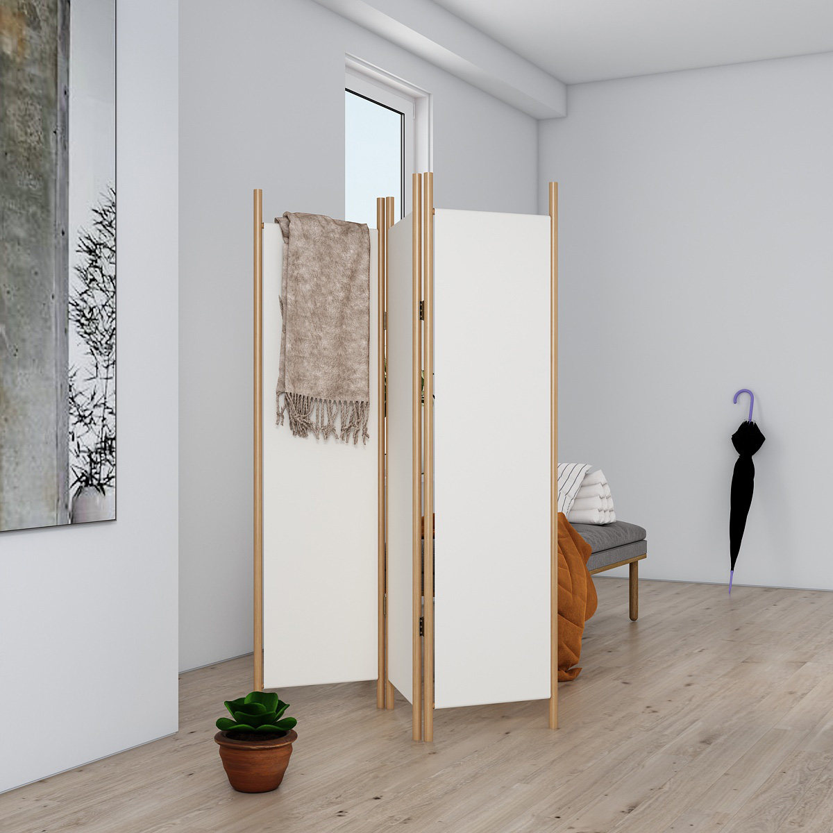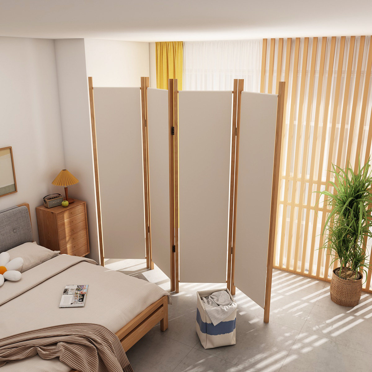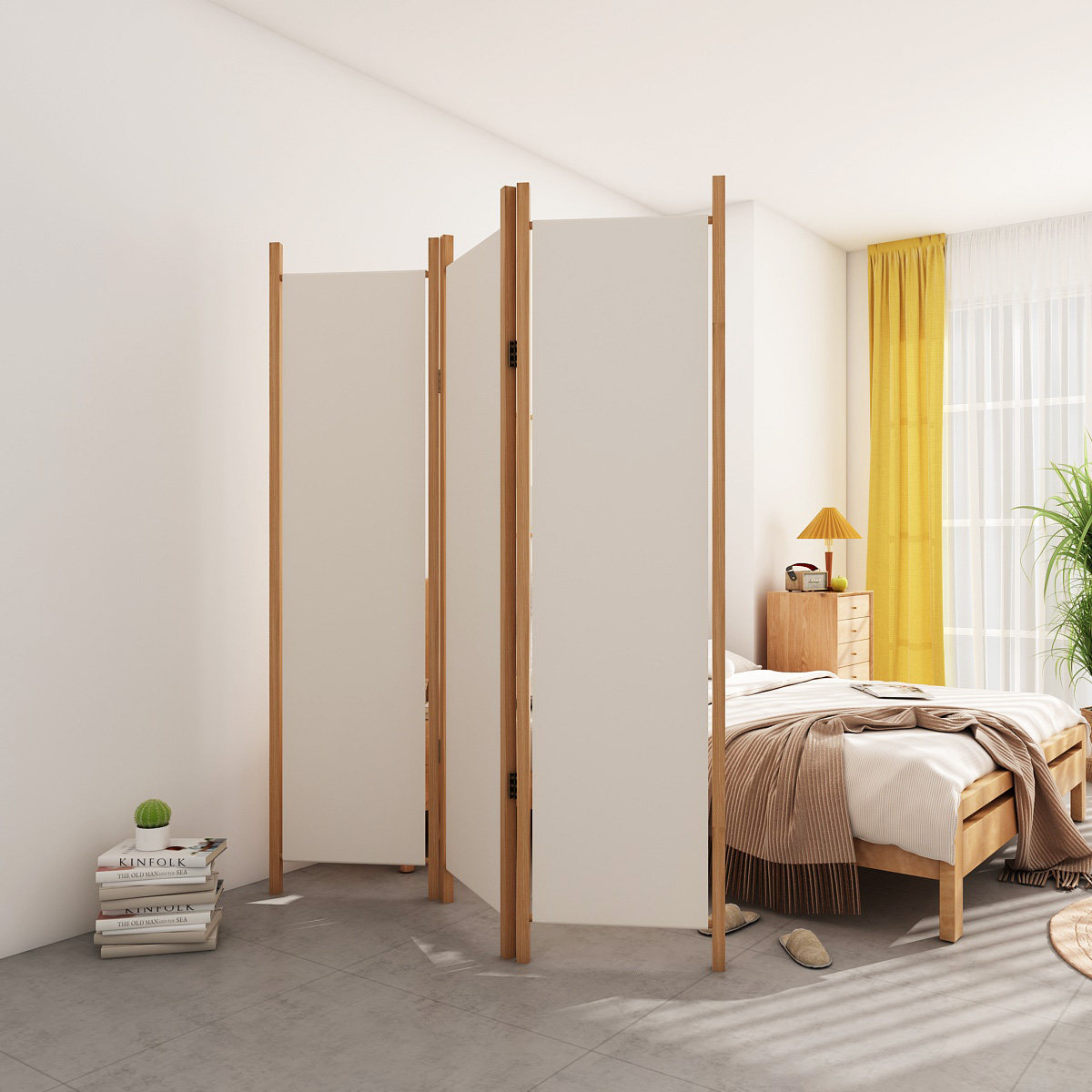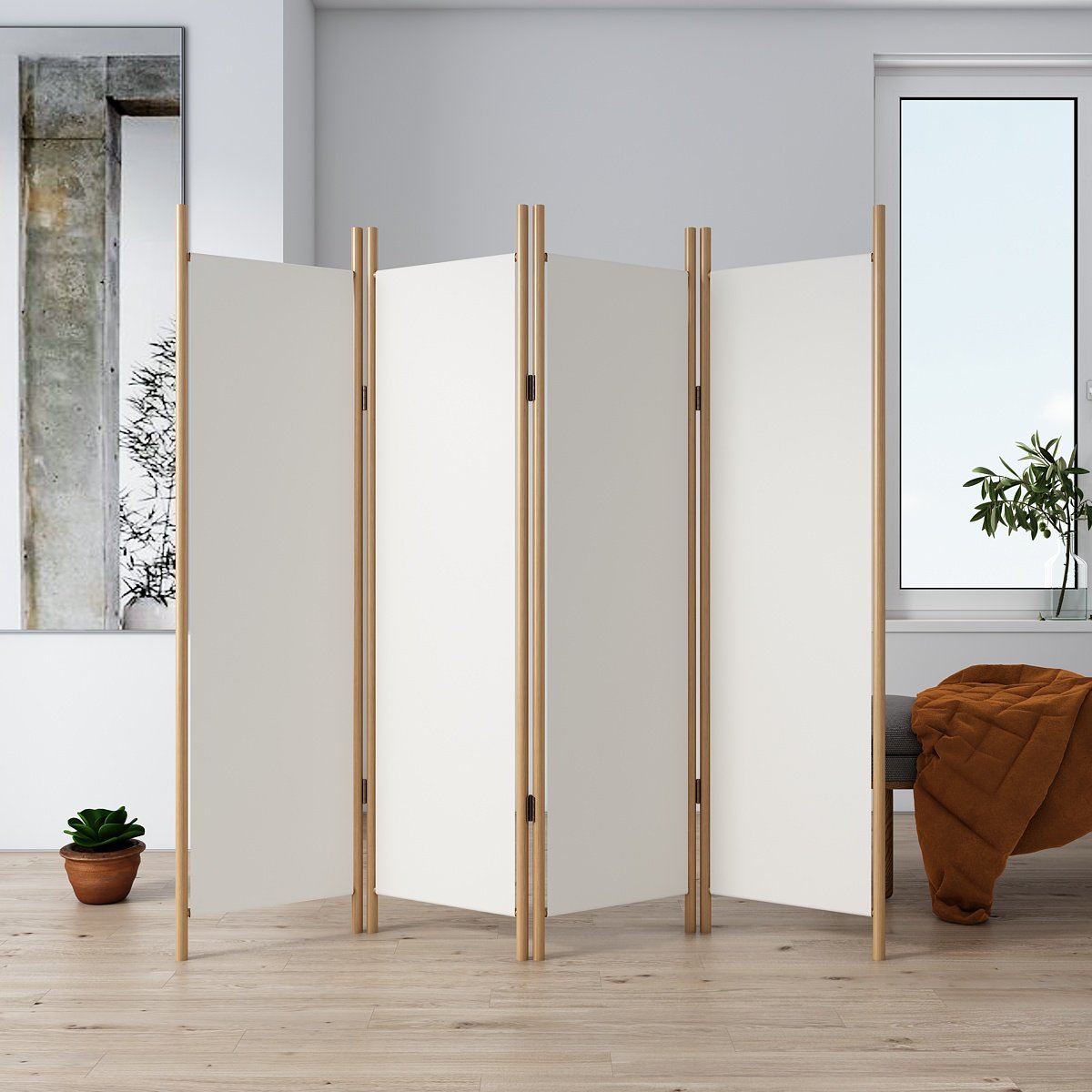 自然な木の温もりを感じる四連パーテーションです。 蝶番で連結された四枚のパネルは自由に角度調整が可能で、空間を柔軟に仕切ることができます。 木のフレームが上部まで伸びたデザインは北欧風の雰囲気を演出し、リビングや寝室、書斎など様々な場所で活躍します。 折りたたみ式なので使わない時はコンパクトに収納でき、軽量で移動も簡単です。 パーテーションとして目隠しや空間の仕切りに最適な一品です。