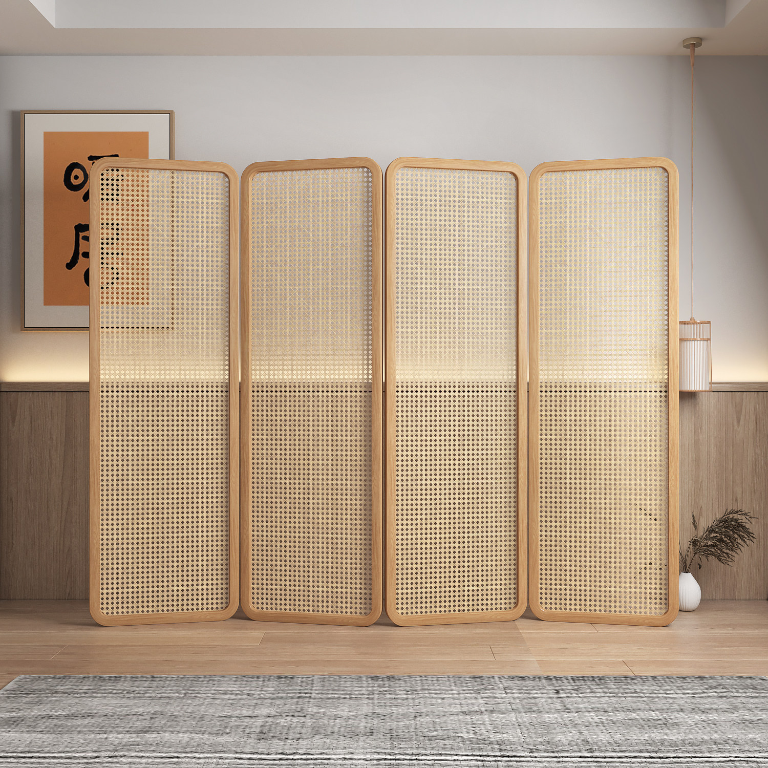 天然の籐を丁寧に編み込んだ四連タイプのパーテーションです。