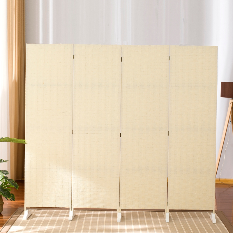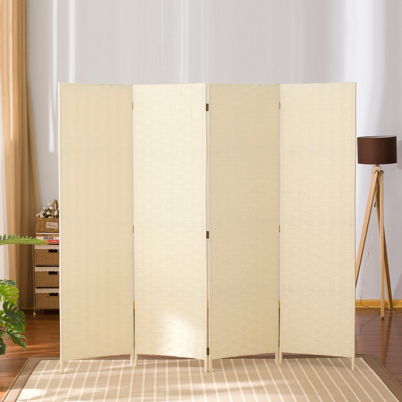 蝶番で連結された四枚のパネルは自由に角度を調整でき、空間を柔軟に仕切ることができます。