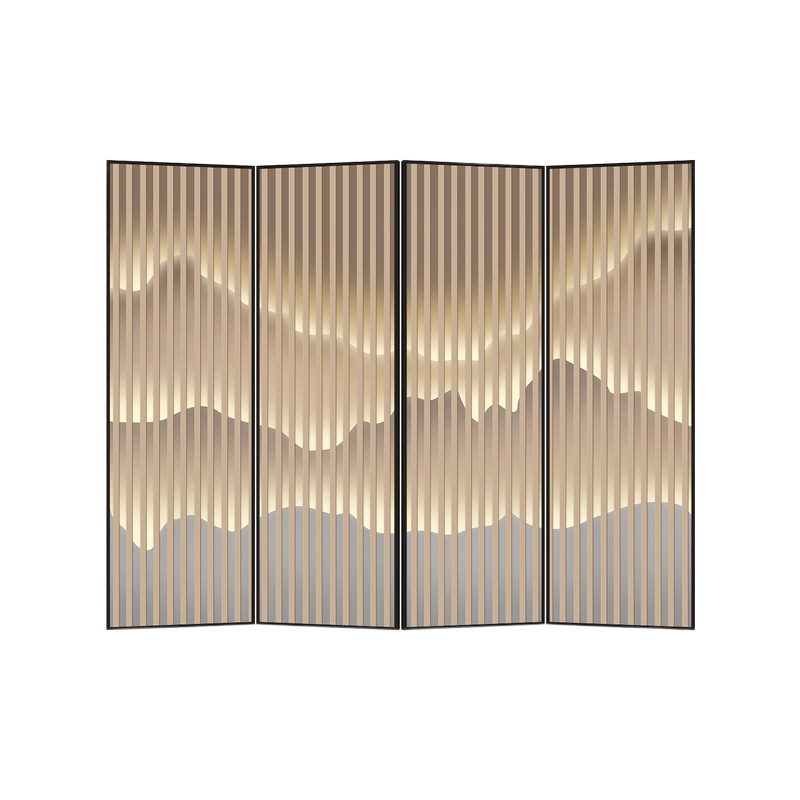 四連の折りたたみ式で空間を緩やかに仕切りながら光を透過させ、明るさを保ちます。