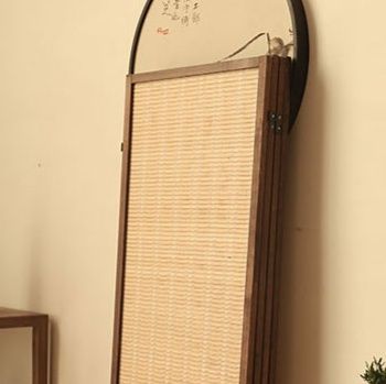 木製フレームと籐編みパネルが調和し、和モダンな空間を演出します。